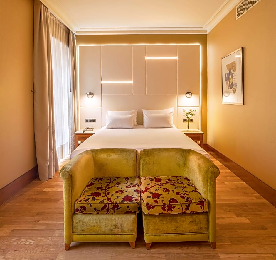 These elegant rooms have air conditioning and soundproofing, and include a 40-inch flat-screen TV, a Nespresso machine and mini-bar. There is also a safe and a work desk.